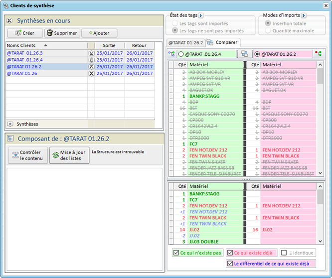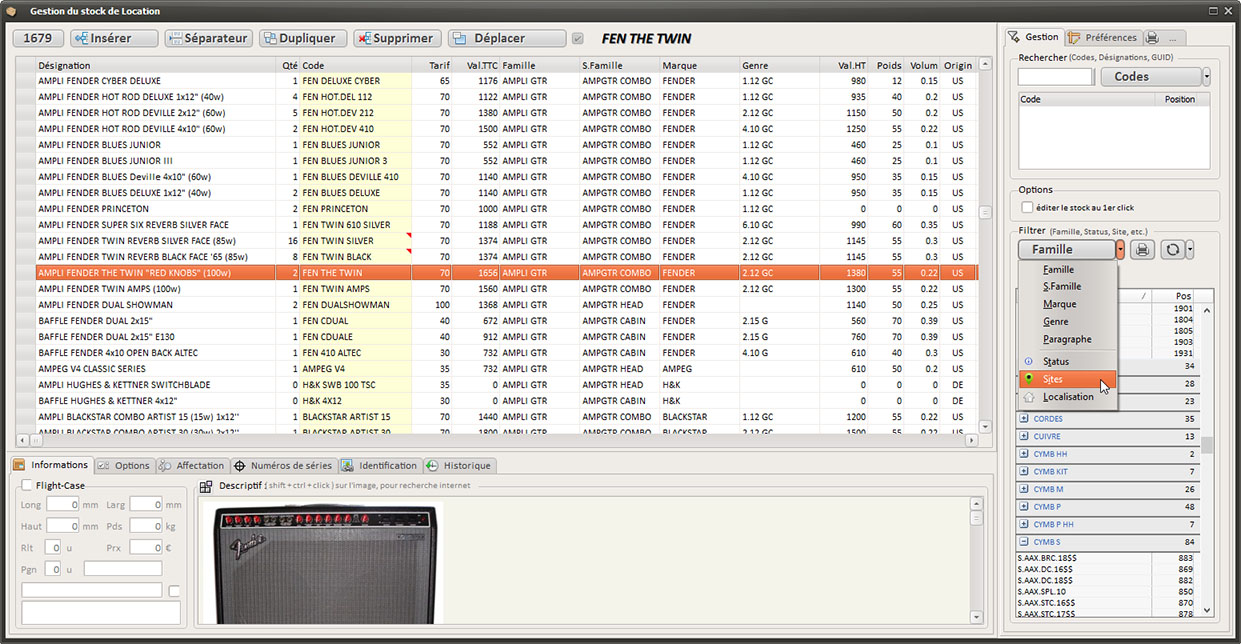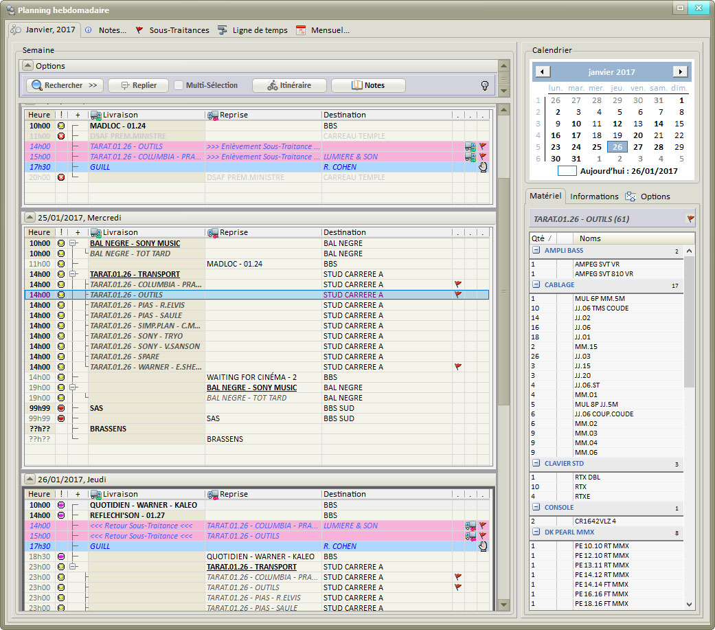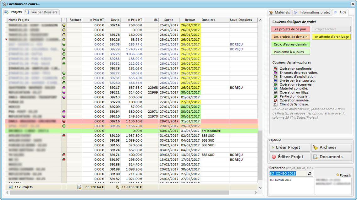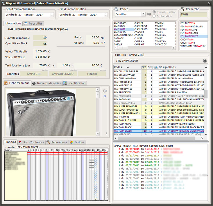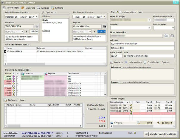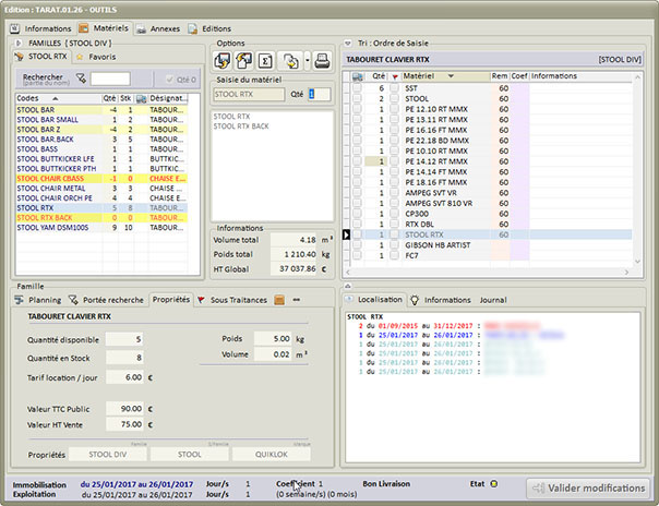 Multisociétés, Multisites de Stockage, Géolocatisation des clients et des trajets de livraison, Projets hiérarchisés, Plannings graphiques, Gestion des Réparations, Gestion du personnel, des véhicules et des Sous-Traitances, Traçabilité du matériel, Synthèse projets et comparaisons, Analytique financier et matériels, Facturation, Devis, Exports Comptables (à ce jour: CCMX, Ciel, DV-Log, EBP, SAGE ligne 100, 500), Gestion très fine des caractéristiques du Stock (QR Code, Gestion des conditionnements, des localisations, des numéros de série, des coûts d'entretient et de stockage, etc.)...